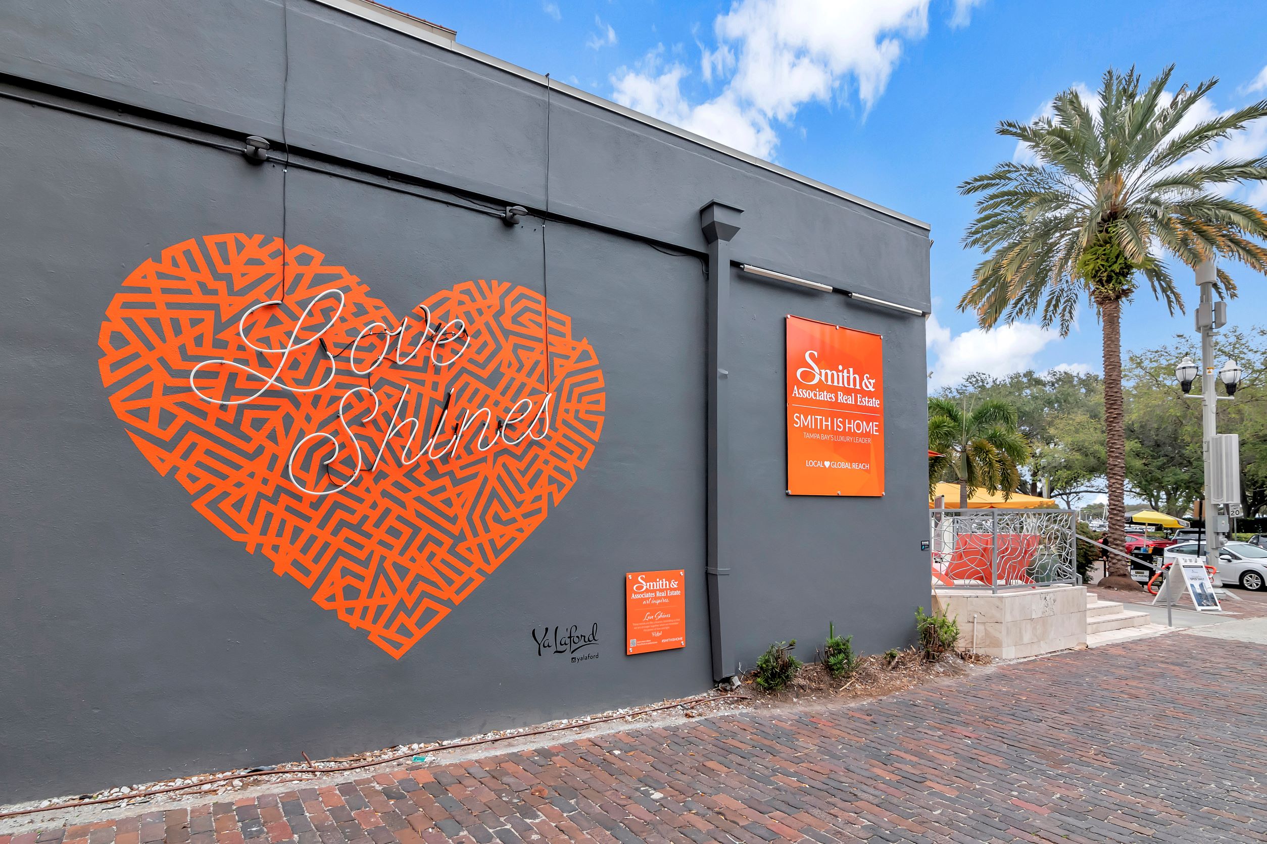Smith & Associates Real Estate’s Beach Drive Sales Gallery is located in the heart of Downtown St. Petersburg. The office is currently also serving as the sales gallery for Arthouse St. Petersburg, a new luxury condominium. Walkable to Beach Drive’s gorgeous waterfront and upscale collection of world-class restaurants and museums, the office is an accommodating resource for luxury homes and new construction development information. With local ties into Downtown St. Petersburg’s thriving arts scene, the office is home to Derek Donnelly’s iconic mural, “768 Days Of Sunshine,” and Ya La'ford’s illuminated mural, “Love Shines,” recently completed in October 2021.